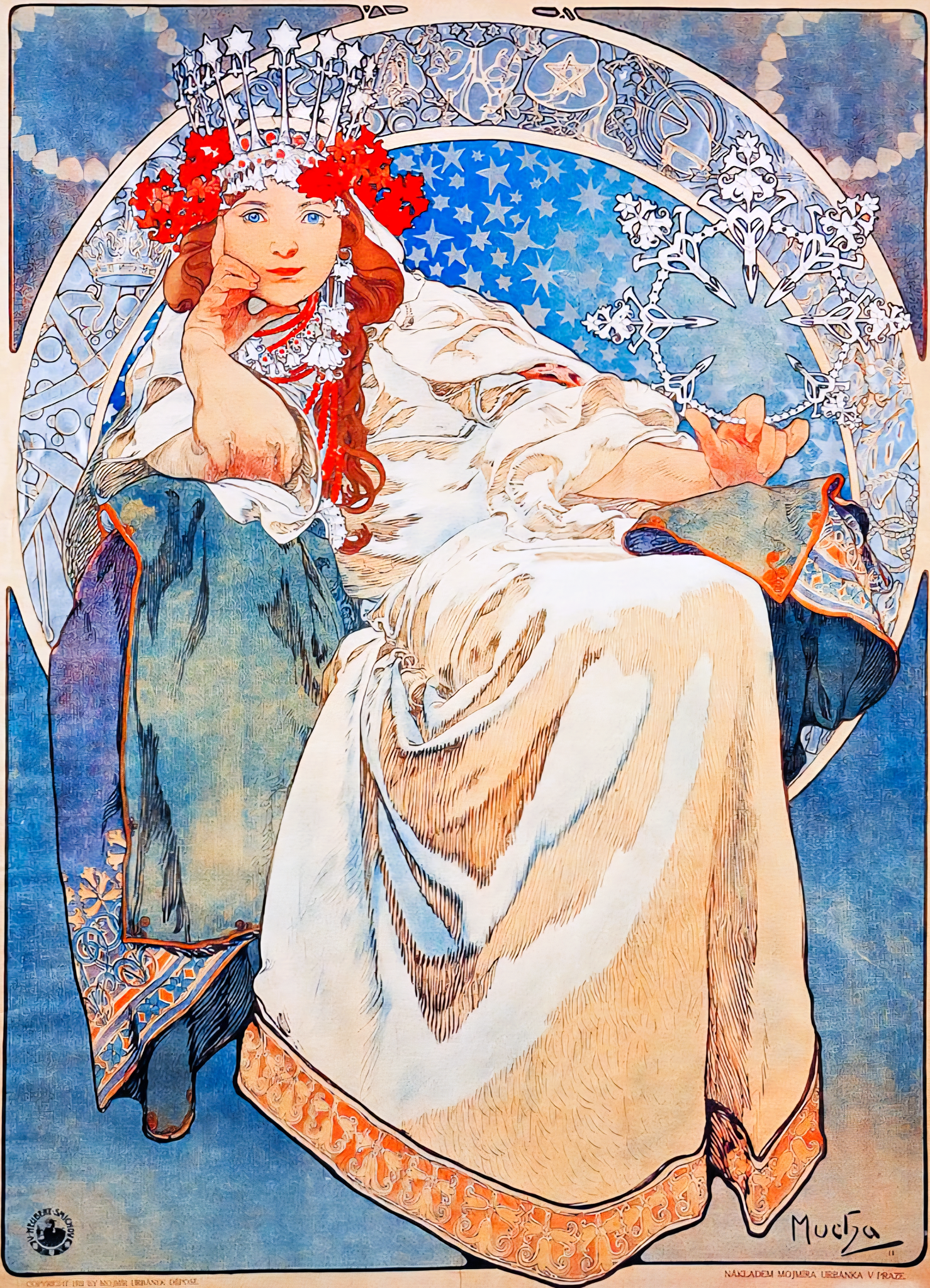Alphonse Mucha's Princezna Hyacinta, circa 1911, features a portrait of the actress Andula Sedlackova in her role for the fairy tale ballet-pantomime that premiered at the National Theatre in Prague.